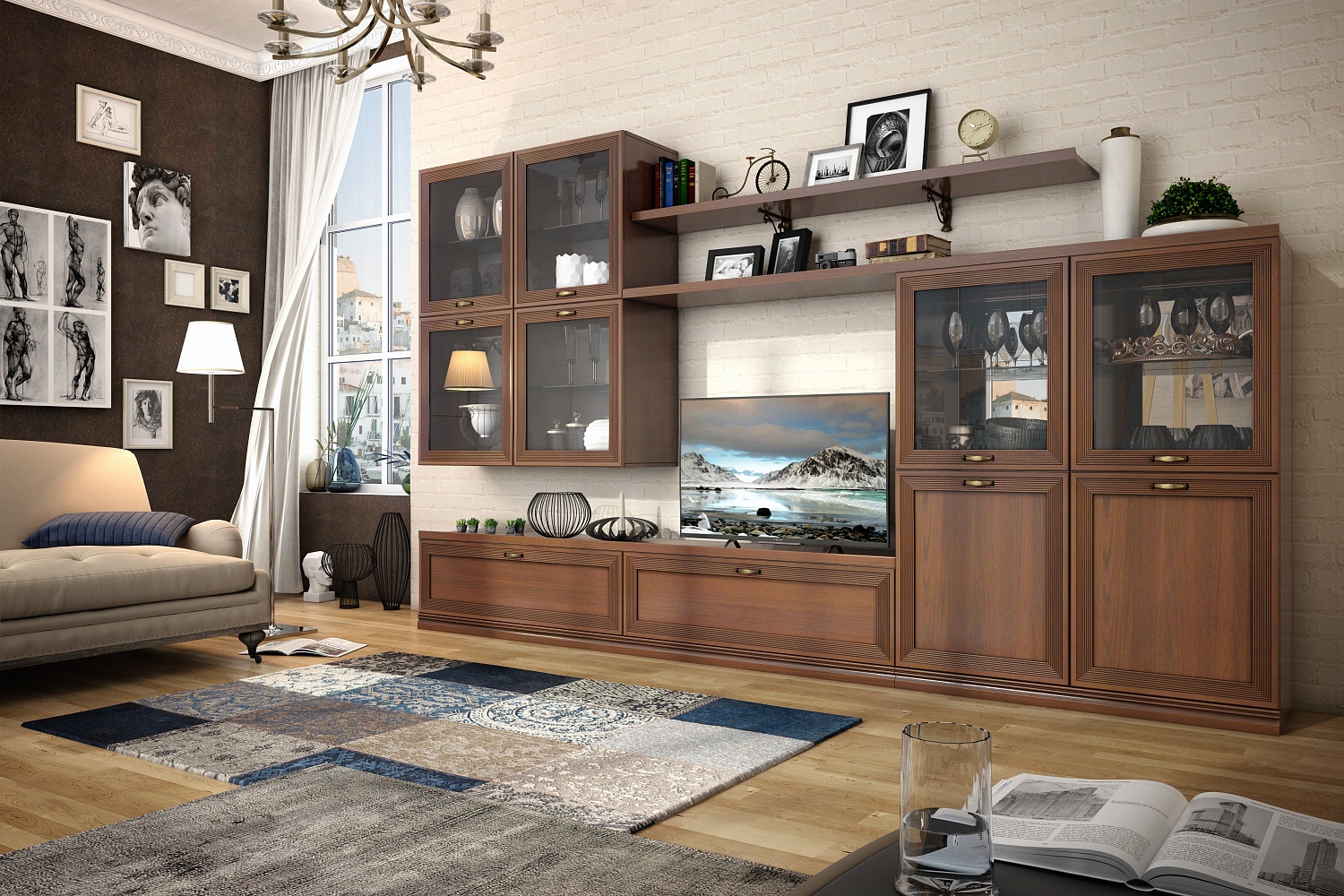 - Гостиная Адажио понравится семейным людям, ценителям классики и традиций. Она просто создана для уютных вечеров с близкими людьми, размеренному чтению любимых книг и просто приятных кинопросмотров за кружкой чая;