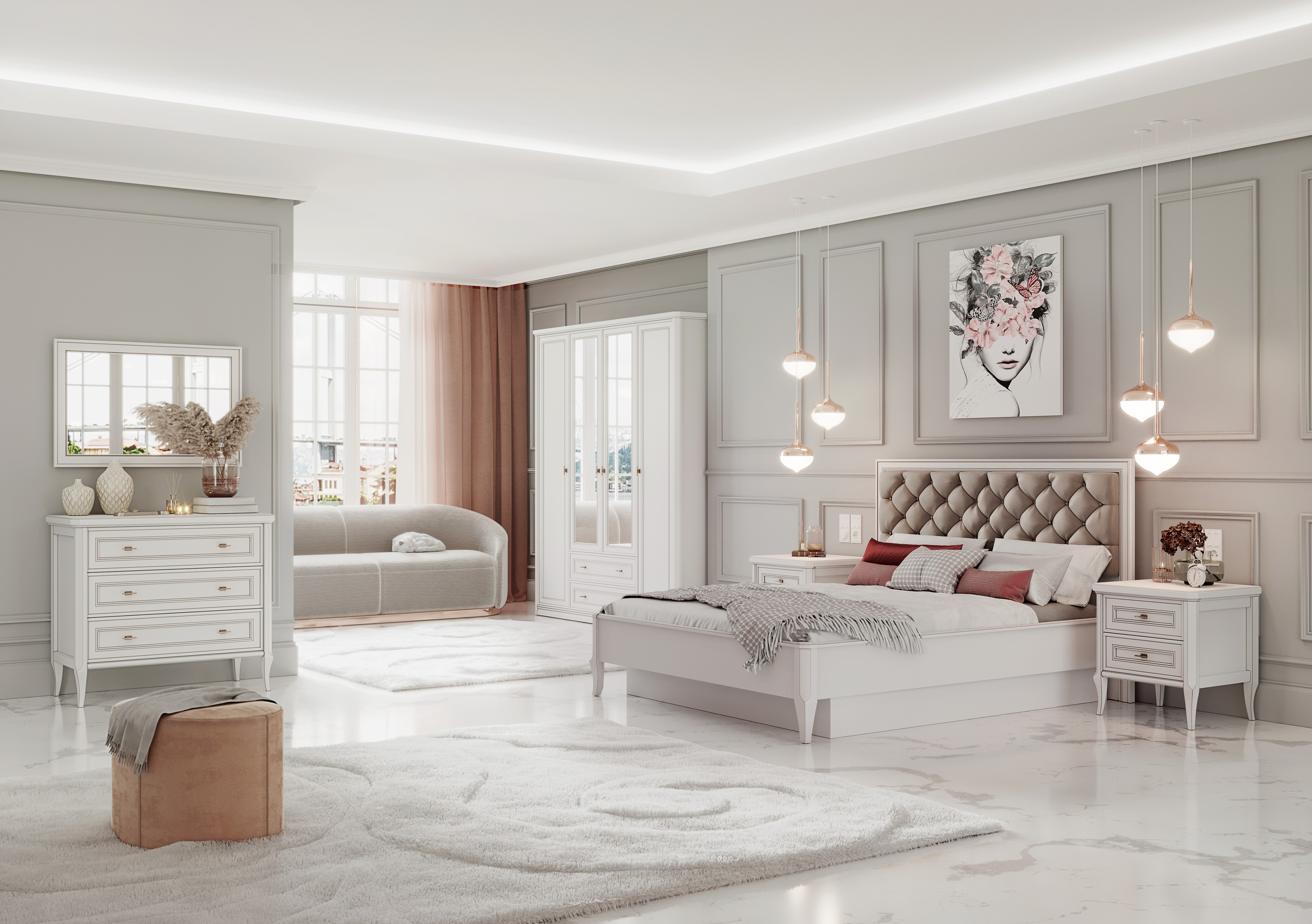 • Спальня в классическом стиле. Такая мебель подойдет к интерьерам в стиле неоклассика, контемпорари, эклектика. При создании этой коллекции наши дизайнеры вдохновлялись романтичной атмосферой и элегантностью Санкт-Петербурга;