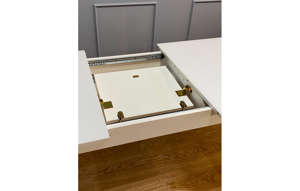 Синхронный механизм раскладки позволяет легко раздвинуть стол одной рукой любому члену семьи. Вставка с материалом столешницы оставляет стол монолитным в разложенном состоянии. Стол максимально устойчив благодаря особому, усиленному креплению опор и регулировочным винтам. Благодаря толстым опорам из массива бука, мощным угловым стяжкам и 2 шпилькам на каждой опоре - стол стоит монолитно на любой, даже неровной поверхности. Для дополнительной устойчивости используются регулировочные винты на концах опор.