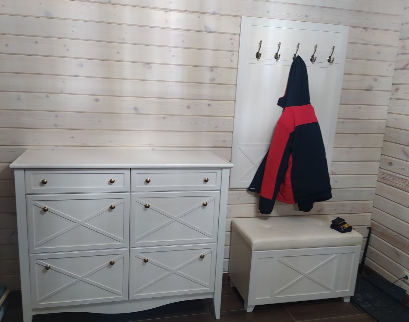 Прихожая отлично подошла для загородного дома. Высокое качество. Уже во второй раз покупаю эту коллекцию. ранее оформляла детскую в подарок племяннице. В прихожей очень вместительный банкетка-сундук. С удовольствием пользуемся всей семьей.